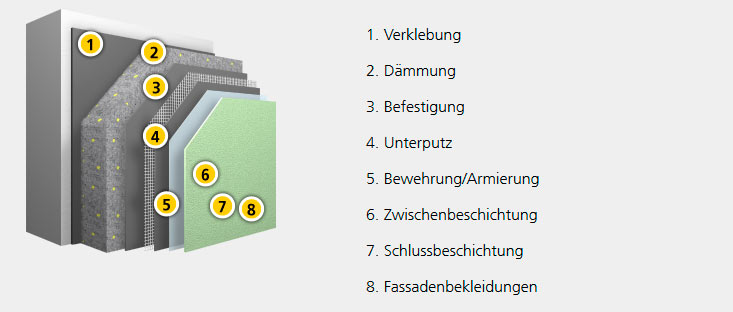 Hinweis Die hier gezeigten schematischen Darstellungen der Fassadendämmsysteme von Sto dienen der Veranschaulichung des Systemaufbaus sowie der Erklärung der einzelnen Systembestandteile. Die für ein konkretes Objekt stets notwendige, individuelle Beratungs- und Planungsleistung können diese Darstellungen keinesfalls ersetzen. Bitte nehmen Sie dafür Kontakt mit uns auf.